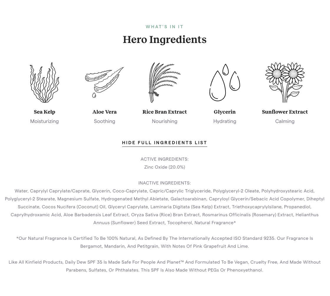 Kinfield - Daily Dew SPF 35 Moisturizing Face Sunscreen